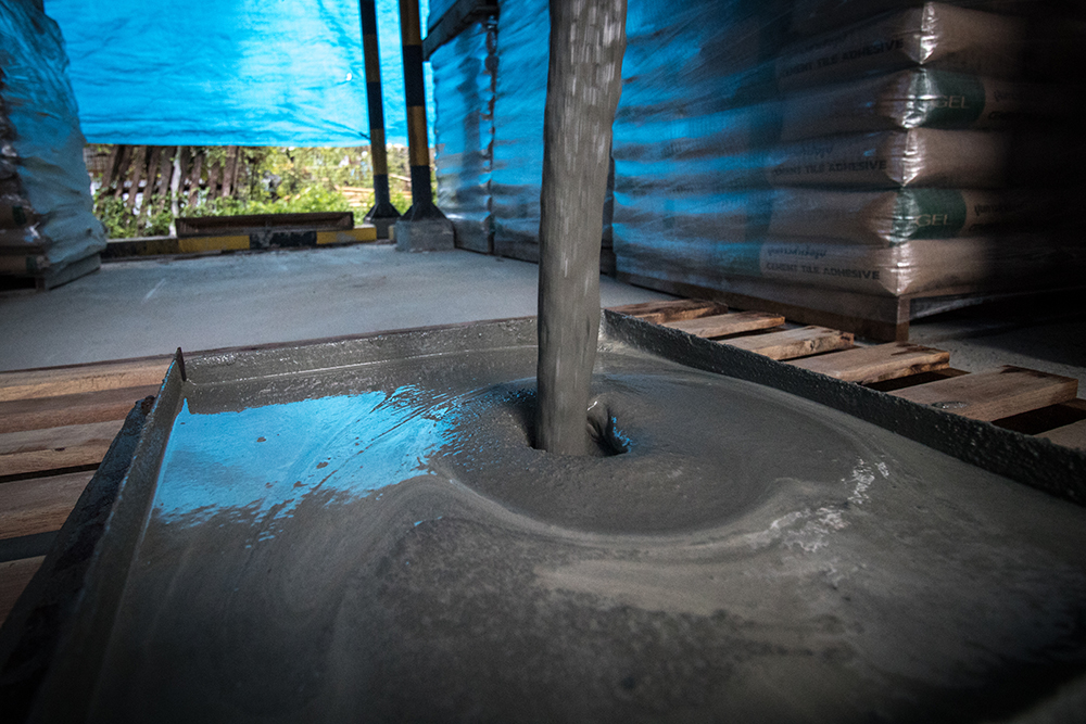 • ควบคุมสัดส่วนน้ำ : ใช้กระบอกตวงน้ำที่ได้มาตรฐาน ห้ามใช้การกะเกณฑ์ด้วยสายตา หากต้องการความไหลตัวสูง (Flowable) ให้ใช้น้ำที่ 4.2 ลิตร/ถุง สำหรับ GEL Non-Shrink Grout